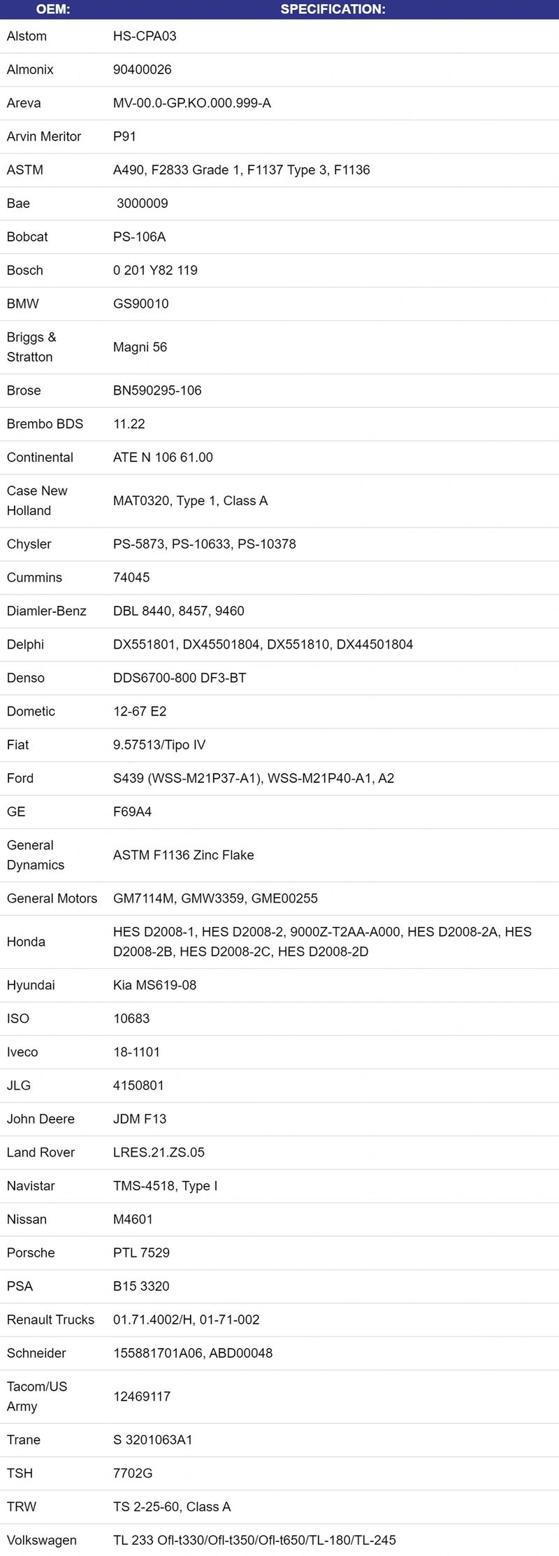 See the following table for specification compliances.